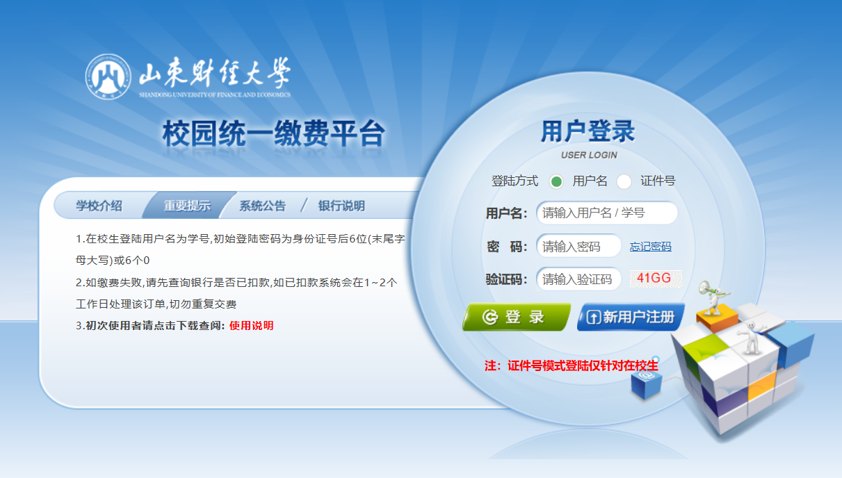 方式一:输入登录网址pay.cwc.sdufe.edu.cn/xysf/,进行登录。