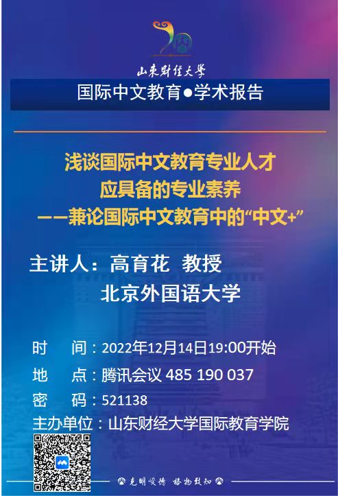 主讲人简介:高育花,文学博士,北京外国语大学中国语言文学学院教授,博士生导师,学术委员会委员,学位分委员会主任。主要从事汉语历史语法研究和国际中文教育研究,出版学术专著2部,在《古汉语研究》《励耘语言学刊》《长江学术》《天津师大学报》等学术刊物发表相关论文40篇,主持国家社科基项目2项,主持完成国家重大社科基金项目子项目一项。担任教育部汉语国际教育专业学位硕士教学指导委员会委员,《国际中文教育》副主编,国家社科基金、教育部社科基金通讯评委,《汉语学报》《汉语史学报》《华文教学与研究》《国际汉学》等学术期刊审稿专家。