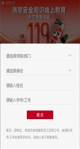 2.“消防安全知识竞赛”入口于11月8日0时—11月17日24时开放,注册进入后可参与竞赛答题,请注意共20道题目,答题限时5分钟,且仅有1次作答机会,请仔细作答。