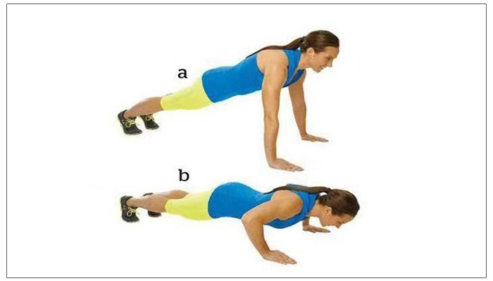 1.俯卧撑:双手分开比肩略宽,双脚并拢,四点支撑于地面,从头到脚成一条直线。双肘伸直,手臂于地面保持垂直,与躯干夹角在45度左右。臀部和腹部核心区域保持收缩,全身紧绷。躯干缓慢下沉,大臂与躯干形成45度夹角,小臂与大臂夹角小于90度。躯干下沉时吸气,撑起时呼气,用胸大肌发力,借助手臂力量将躯干推起至肘关节完全伸直。撑起时肘关节没有伸直、下沉时大小臂角度大于90度、从头到脚没有形成一条直线的均不予计算次数。