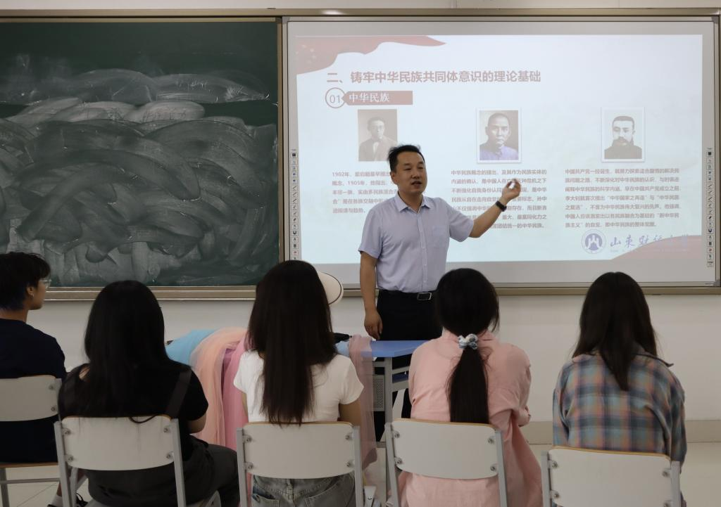5月9日下午,山东财经大学公共管理学院石榴籽工作坊在圣井校区开展“爱我中华——铸牢中华民族共同体意识教育表达性团体辅导”活动,校党委统战部副部长刘洪涛应邀主讲。