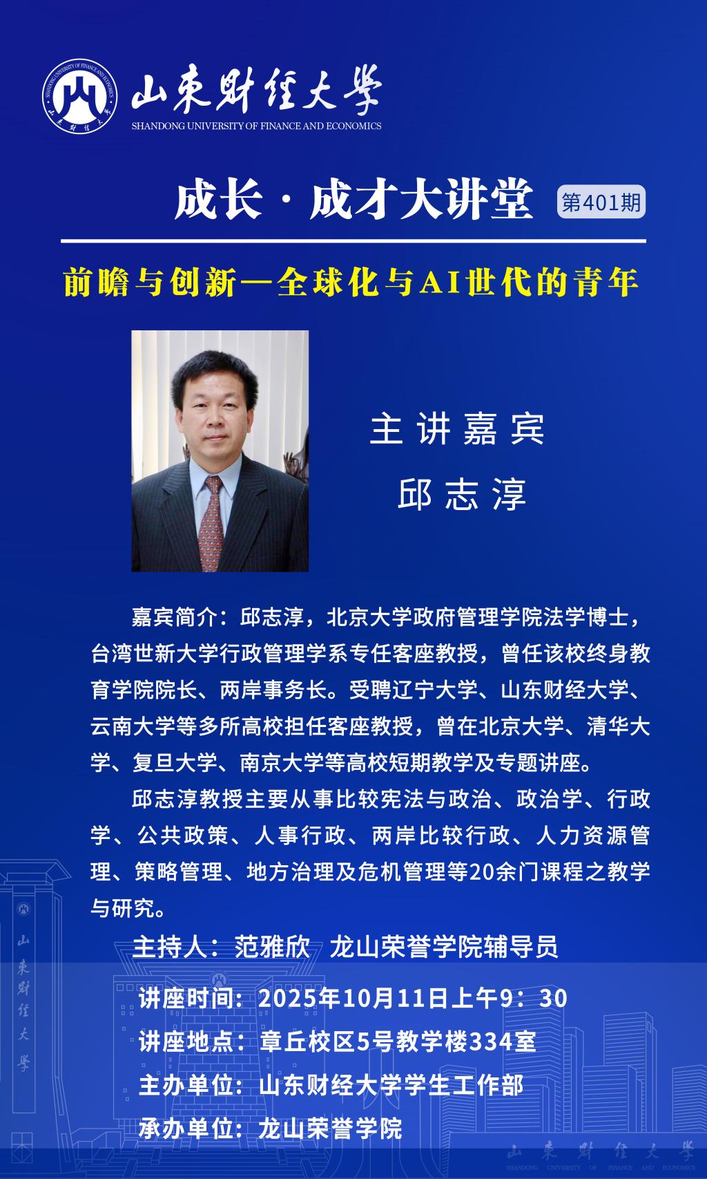 成长·成才大讲堂(第401期):前瞻与创新—全球化与AI世代的青年思维