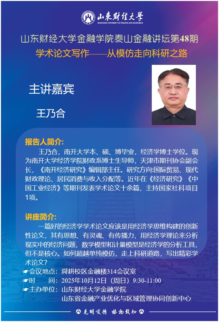 泰山金融讲坛(第48期):学术论文写作——从模仿走向科研之路