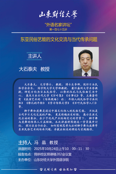 “外语名家讲坛”第一百七十五讲:东亚民俗艺能的文化交流与当代传承问题