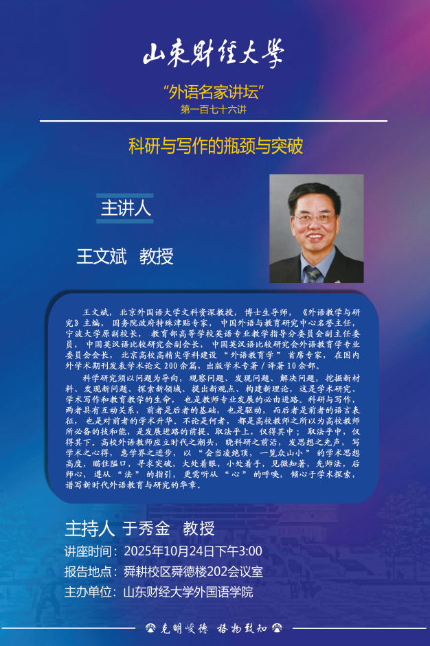 “外语名家讲坛”第一百七十六讲:科研与写作的瓶颈与突破
