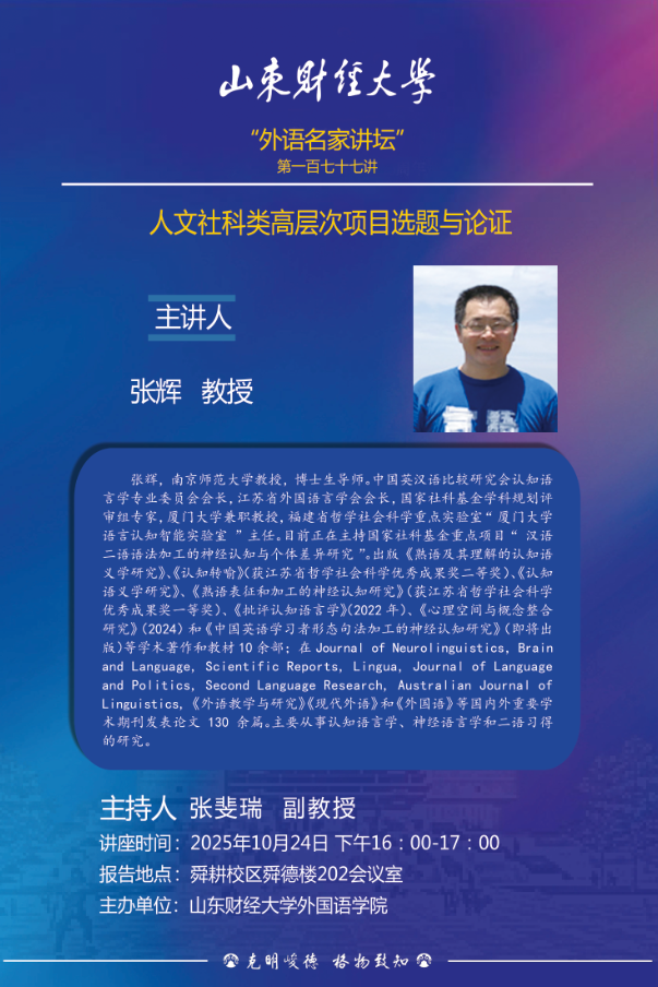 “外语名家讲坛”第一百七十七讲:人文社科类高层次项目选题与论证