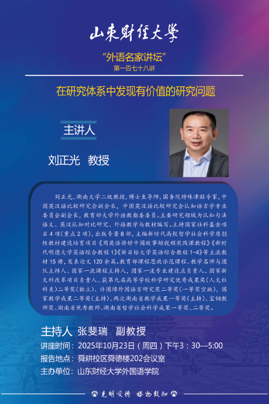 “外语名家讲坛”第一百七十八讲:在研究体系中发现有价值的研究问题