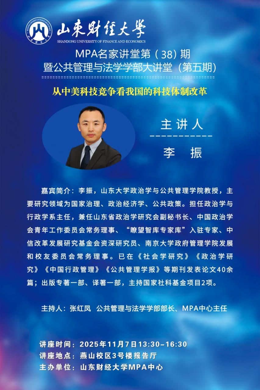 MPA名家讲堂第38期暨公共管理与法学学部大讲堂(第五期):从中美科技竞争看我国的科技体制改革