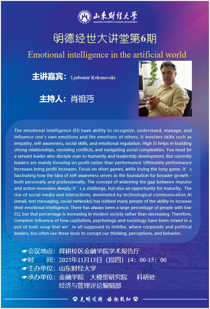 明德经世大讲堂(第6期)--Emotional intelligence in the artificial world