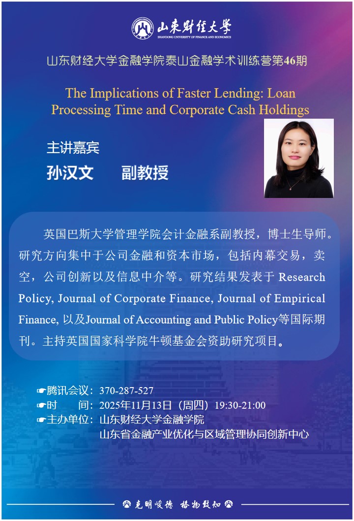 泰山金融学术训练营(第46期)--The Implications of Faster Lending: Loan Processing Time and Corporate Cash Holdings